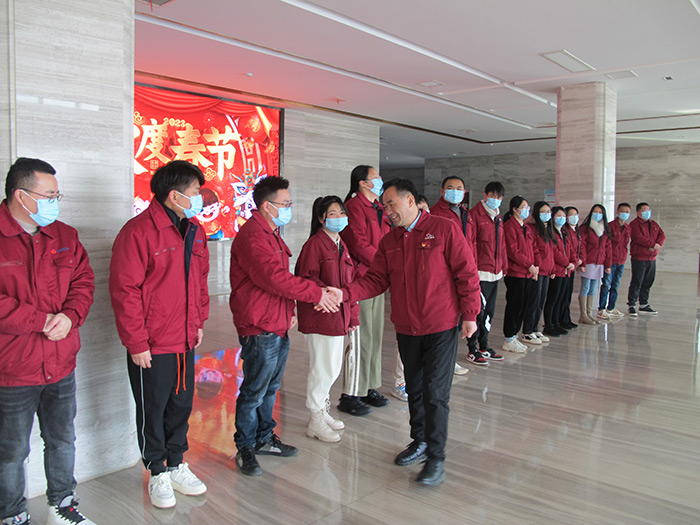 “同志們!給大家拜年了!”“新春快樂!兔年大吉!”上午9時,周敏建一行與各子公司員工互道兔年新春祝福,所到之處笑聲朗朗、祝福聲聲、掌聲連連……。集團(tuán)領(lǐng)導(dǎo)對各單位過去一年取得的成績給予充分肯定,對大家立足崗位、辛勤工作的付出表示感謝。