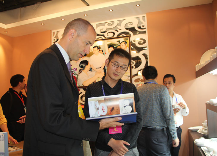 一位瓷博會邀請的外國貴賓在參觀完我們的展館后,對我公司的產(chǎn)品非常感興趣,表示有意向合作,領取了公司的產(chǎn)品畫冊
