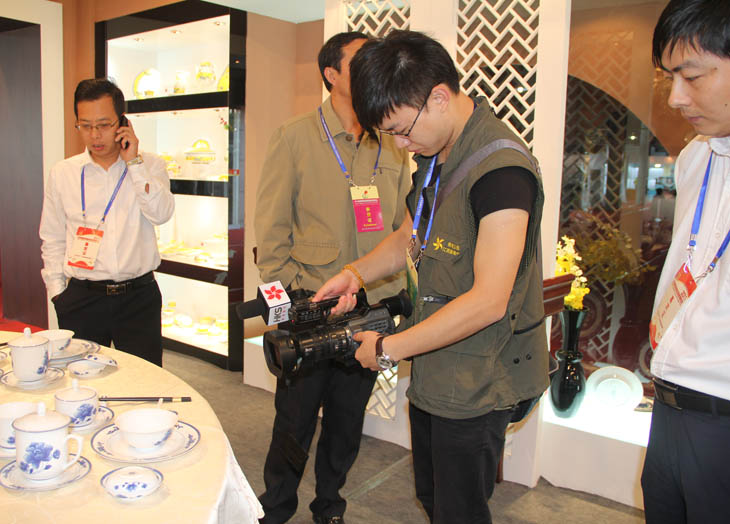 全國人大常委會副委員長韓啟德在我公司展館參觀,對我公司在全國青花玲瓏及青花日用陶瓷器形與裝飾設計大賽金獎作品《憶漢》非常感興趣