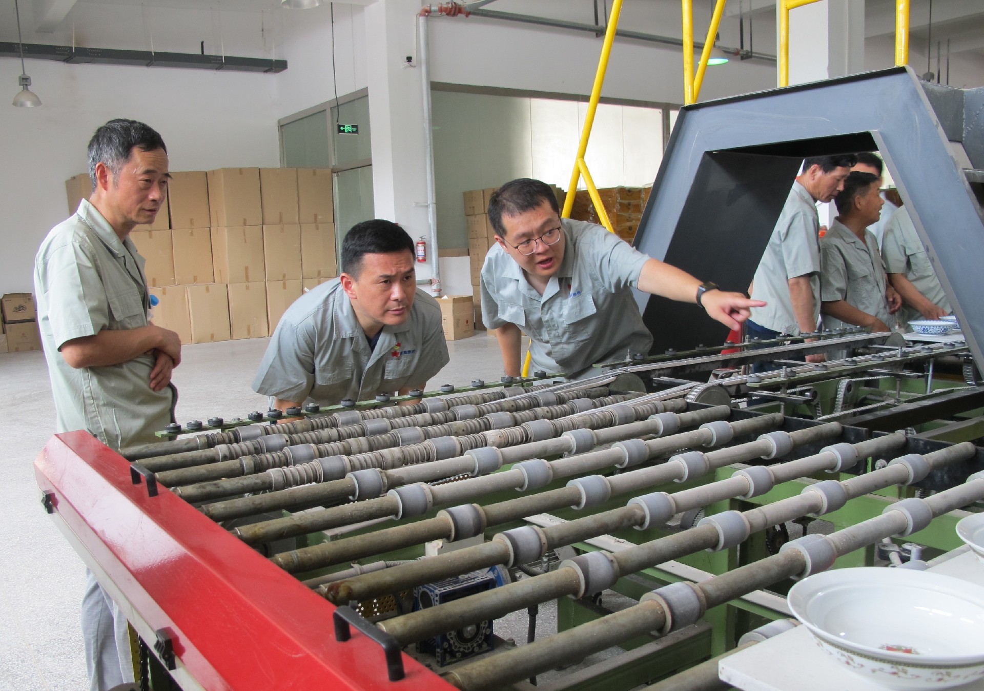 在生產(chǎn)車間調(diào)研中,鄧景揚先后下到各個生產(chǎn)工序現(xiàn)場,從原料、模型、成型、燒煉到彩繪車間,對每個工序都進行了詳細(xì)了解,重點了解了紅葉一廠的整體生產(chǎn)能力及現(xiàn)狀。