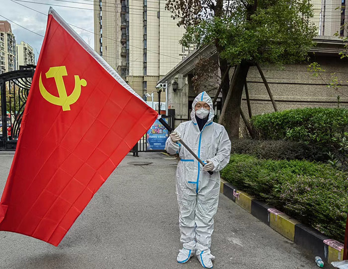 組織委員邵建華,自疫情發(fā)生以來(lái),每天都值守在疫情一線,天沒(méi)亮他就到核酸檢測(cè)崗去維持秩序,核酸檢測(cè)完他又去卡口執(zhí)勤。不僅如此,因小區(qū)封控,環(huán)衛(wèi)車(chē)進(jìn)不來(lái),他每天用自己的雙手將居民的生活垃圾一桶一桶的運(yùn)出,不怕臟,不怕累,只為還原小區(qū)一個(gè)干凈衛(wèi)生整潔的環(huán)境。